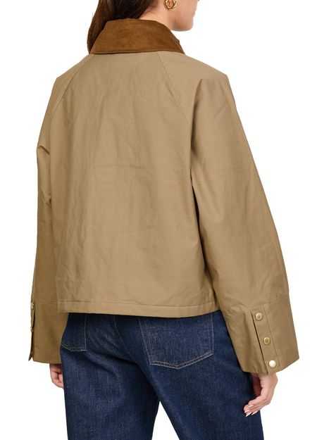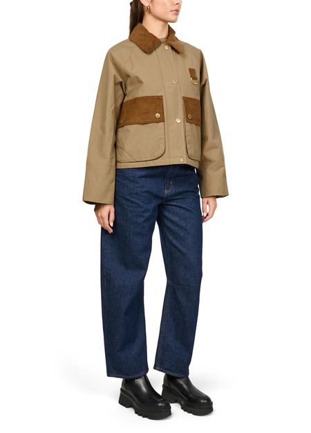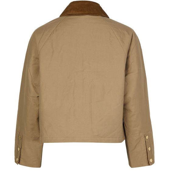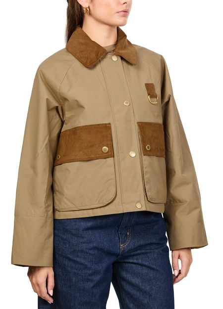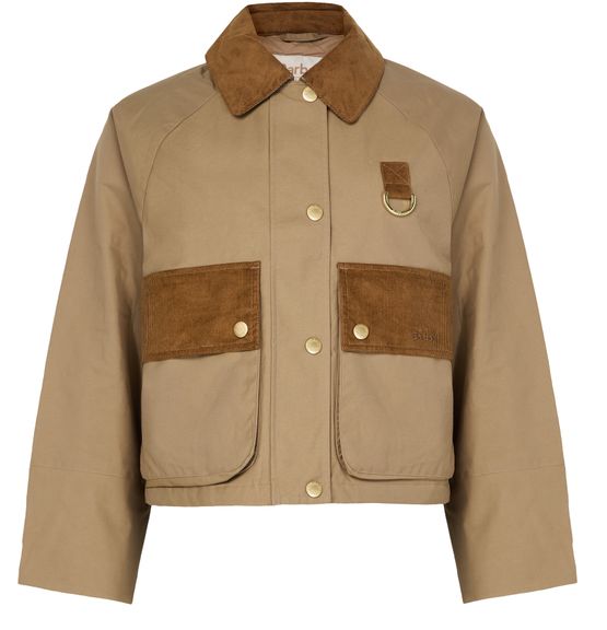 Reveal Barbour's Phoebe casual jacket, a chic cropped style with a boxy fit. Featuring long sleeves and button fastening, this jacket stands out with its gold finish and patch detail. Flap pockets add practicality, making it a versatile choice for any occasion.