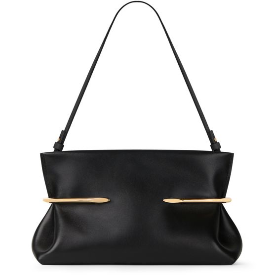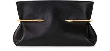 Reveal Givenchy's clutch, crafted from smooth leather and adorned with a refined gold finish. The single compartment design offers streamlined elegance, while metallic accents add a modern edge. This piece effortlessly blends sophistication and practicality for a statement accessory.