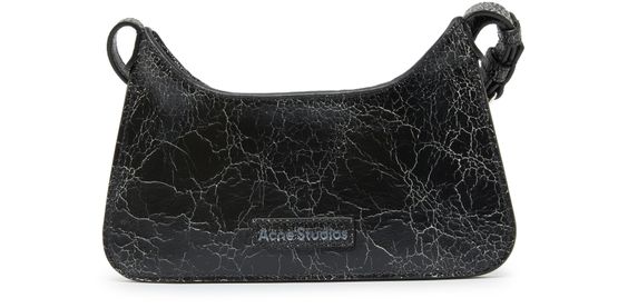 Acne's Shoulder Bag features a patch detail and appliquéd logo on the front. It has a zipper closure and a thin strap with a silver finish. The bag can be worn on the shoulder with an adjustable strap for a customized fit. A stylish and practical accessory for everyday use.