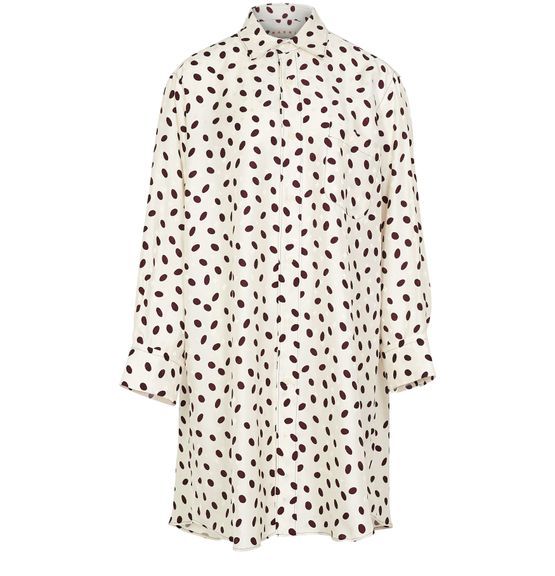 • Description : Oversized shirt, classic collar, long sleeves, buttoned fastening, chest pocket, all-over print, polka-dot pattern.