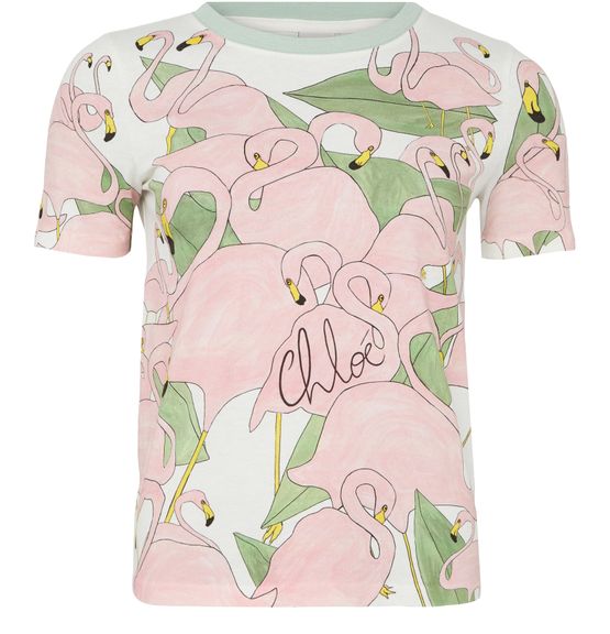 Reveal Chloé's printed short-sleeved t-shirt, featuring a crew neck and an all-over print for a fresh, modern look. The printed logo adds a signature touch, while the relaxed silhouette makes it easy to pair with your favorite jeans or skirts for effortless style.
