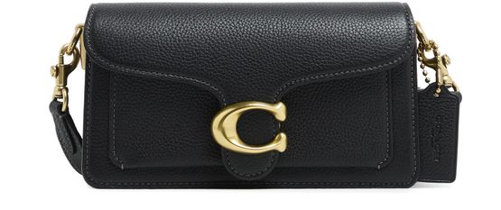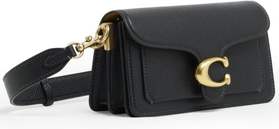 Coach's Refresh Tabby shoulder bag 20 boasts a chic flap closure and a striking front logo in gold letters. With its single handle and detachable wide strap, it can be effortlessly worn on the shoulder. Visible topstitching and a luxurious gold finish add to its sophisticated allure.