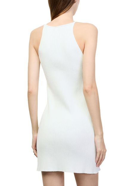 Reveal Courreges's rib knit A-Line dress, a sleeveless mini dress with a round neck and visible stitching. The ribbed texture and A-line cut create a refined silhouette, making it a versatile choice for day or evening. Effortlessly modern, this piece brings a fresh edge to your wardrobe.