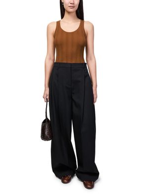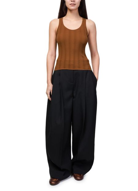 Reveal Bompard's ribbed vest top, designed with a round neck for a refined silhouette. The soft ribbed texture adds dimension, while its versatile cut pairs effortlessly with tailored pants or relaxed denim. Perfect for layering or wearing solo, this top brings understated sophistication to any look.