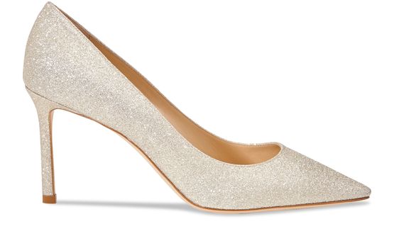 Jimmy Choo's Romy 85 pumps feature a classic pointed toe and sleek shape for a sophisticated look. The all-over pattern adds a touch of flair, while the logo-printed insole adds a luxurious detail. With a very thin sole and stiletto heel, these pumps exude elegance and femininity.