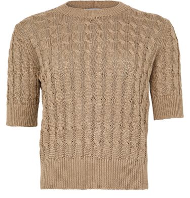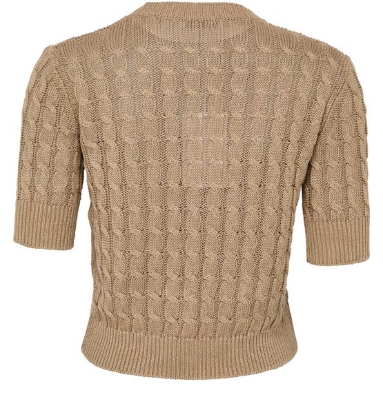 Reveal Max Mara's round neck knitted t-shirt, crafted with a refined crew neckline and short sleeves for a sleek silhouette. The soft knit texture offers comfort and versatility, making this top an effortless choice for layering or standalone wear, seamlessly elevating both casual and polished looks.