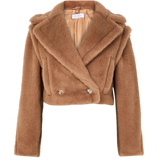 Reveal Max Mara's Santos Teddy jacket, a regular fit piece crafted from warm fabric. This cropped design features a button fastening and patch pockets, enhanced by fur detail. Perfect for casual settings, it combines style and functionality effortlessly.