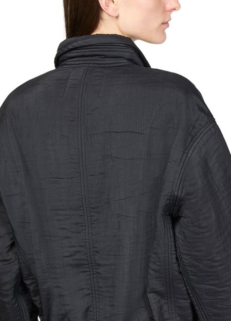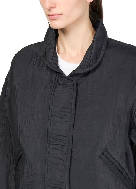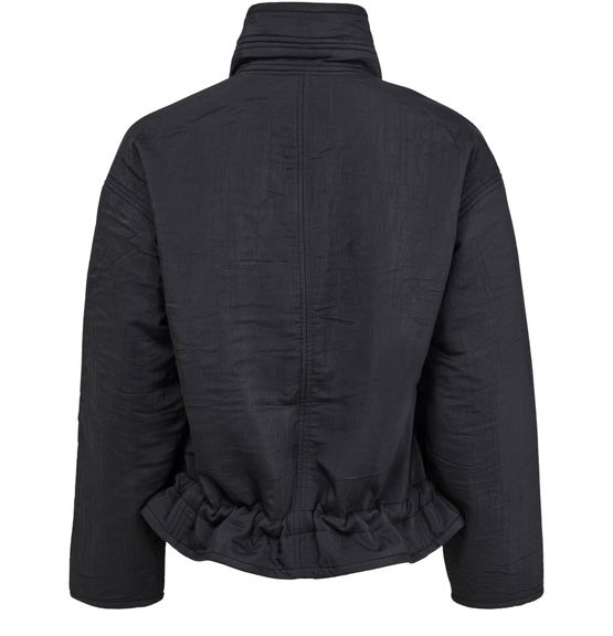 • Description : concealed closure, short, high neck, long-sleeved, casual jackets, side welt pockets.