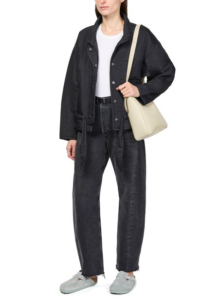 Etoile Isabel Marant's Selane jacket showcases a short, long-sleeved silhouette with a chic high neck and concealed closure for a sleek look. Perfect for casual outings, it features side welt pockets for added convenience, making it an essential piece for effortless style and comfort in any season.