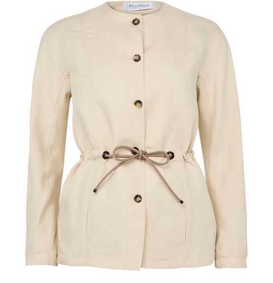 Reveal Max Mara's single-breasted jacket, crafted in a short, collarless silhouette with a front buttoned closure. Long sleeves and side pockets add practical flair, while the streamlined design ensures effortless versatility for both casual and elevated looks. A refined essential for modern wardrobes.