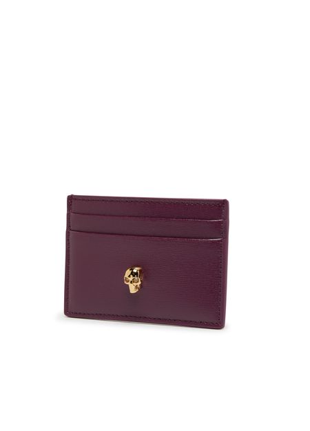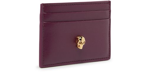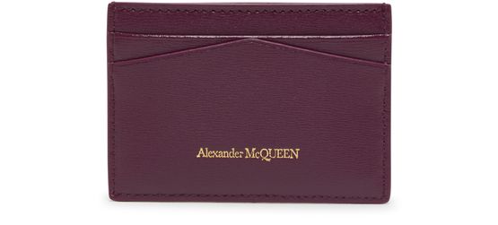 Alexander McQueen's skull card holder features the iconic logo at the back in gold letters with a shiny gold finish. This sleek and stylish accessory is perfect for holding cards and cash, adding a touch of luxury to any ensemble. The subtle yet recognizable design makes it a timeless statement piece.