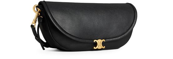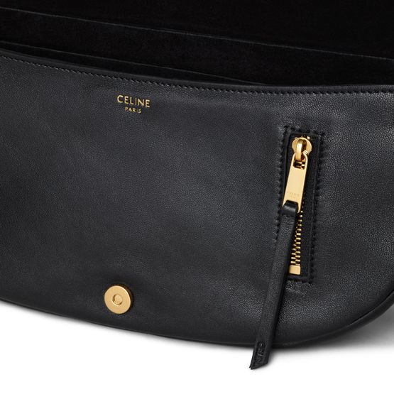 Discover le Halfmoon small model agneau souple brillant, bag porté épaule de Celine avec son design polyvalent, équipé d'une bandoulière amovible et ajustable pour des options de port à l'épaule ou en bandoulière courte. Le bag dispose d'un compartiment principal, complété par une poche zippée extérieure sous le rabat et une autre à l'arrière.