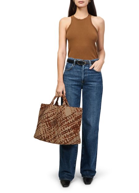 Reveal Naghedi's St Barths large tote, crafted in open weave for a contemporary edge. The double handles offer versatile carrying, while the spacious single compartment ensures effortless organization. This tote blends modern design with practical elegance, making it an essential for refined, everyday style.