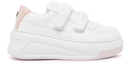 Embrace Acne Studios's Steffey U Friend Raise low top sneakers. These stylish sneakers feature laces and a strap, a printed logo, and visible stitching. With a platform, thick outer sole, and round toe, they offer both comfort and a modern edge.