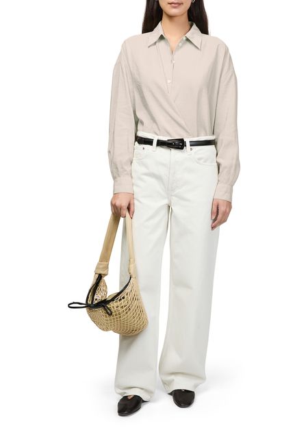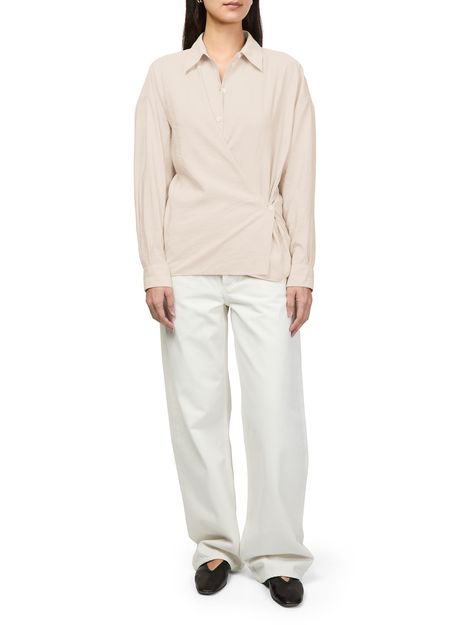Reveal Lemaire's straight collar twisted shirt, a refined top featuring long sleeves and a button fastening. The gathered waist detail creates a sculpted silhouette, while the crisp design offers versatile styling for both casual and elevated looks. Experience modern sophistication with this standout piece.