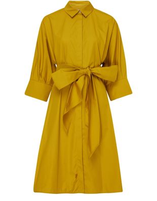 S Max Mara's Tabata shirt dress combines timeless style with modern sophistication. The knee-length, three-quarter-sleeved design features a belted waist and shirt collar for a polished look. Cuffed sleeves and a concealed closure add understated details, while the logo at the back label adds a touch of branding to this versatile shirt dress.
