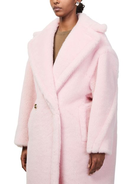 Reveal Max Mara Teddy Tedgirl coat, crafted from warm fabric for a long, elegant silhouette. The double-breasted closure and classic collar add timeless appeal, while long sleeves ensure comfort. This versatile overcoat transitions seamlessly from day to night, making it a refined wardrobe essential.