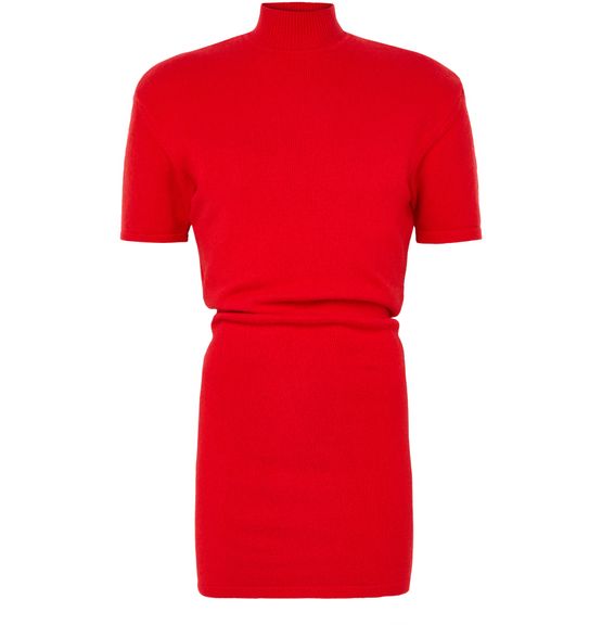 Reveal Jacquemus's The Castagna knit dress with its slim fit silhouette and mockneck design. This short-sleeved mini dress exudes a modern elegance, ideal for any stylish occasion. The soft texture and sleek form capture the essence of contemporary sophistication.