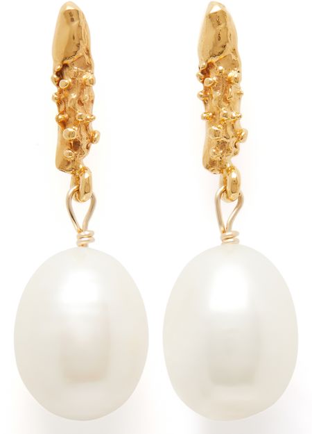 • Description : Earrings, floating effect, statement pearl, built-in clasp at the back, sold as a pair.