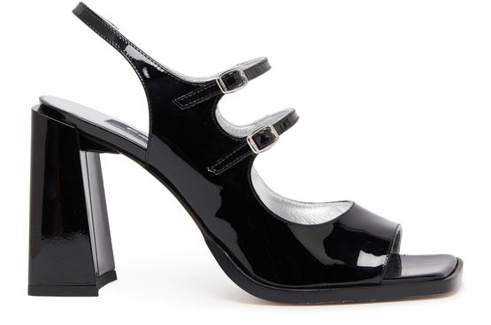 Step into elegance with Carel's Vendome sandals, featuring a stylish buckled ankle strap and a secure rear strap. The open square toe reveals a sophisticated design, while the high square heel adds height. With visible stitching and an appliquéd logo, the contrasting sole elevates these sandals & slides for any occasion.