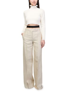 Reveal Max Mara's wide linen pants, crafted with a refined ankle-length silhouette and front pleating for a polished look. The concealed closure and welt pockets add functional elegance, while belt loops and back darts ensure a tailored fit—perfect for elevating both formal and relaxed ensembles.