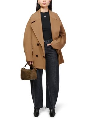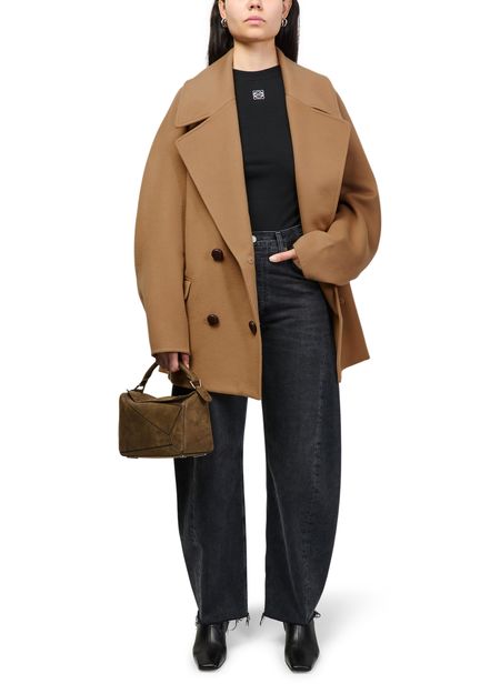 Reveal Loewe's short coat in wool, a refined piece defined by its double-breasted closure and classic collar. Long sleeves and flap pockets add practical elegance, while the premium wool construction ensures warmth and sophistication. This versatile coat transitions seamlessly from day to evening, elevating any modern wardrobe.