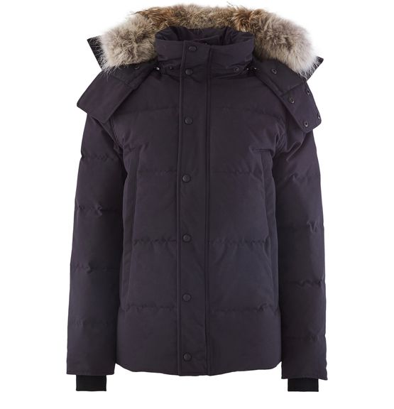 Designed by Canada Goose, the Wyndham parka has a classic style that retains warmth. This men's coat with a fur-trimmed hood reinforces a masculine look.