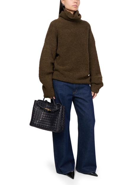 Bottega Veneta's Andiamo is crafted from smooth leather using the brand's iconic Intrecciato weaving technique. It features a practical handle, thin strap, and golden finish. Versatile and stylish, it can be hand carried, worn on the shoulder, or across the body, making it a perfect accessory for any occasion.