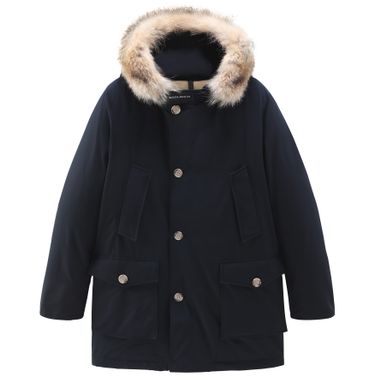 Woolrich's Arctic Parka is a windbreaker featuring long sleeves, a hood, buttoned fastening, side pockets, and breast pockets. It is finished with a detachable fur detail and a label with logo. This parka is perfect for braving the cold in style and comfort.