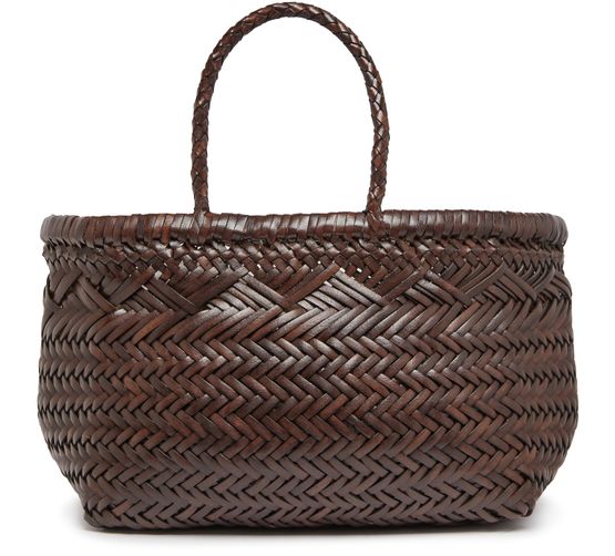 Reimagine Dragon Diffusion's Bamboo Triple Jump Small bag with its thin strap and handcrafted elegance. This unique piece, designed for hand carrying with double handles, features a single compartment and an appliquéd logo. The artisanal craftsmanship ensures each basket's sizing and details are one-of-a-kind.