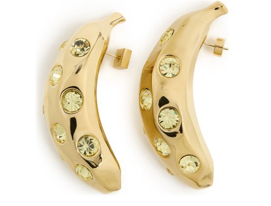 Jacquemus's Bananes earrings are a stunning accessory, sold as a pair to elevate any outfit. Featuring a sliding closure for effortless wear, these earrings boast a luxurious gold finish that catches the light beautifully. Embrace a touch of elegance and sophistication with this exquisite addition to your jewelry collection.