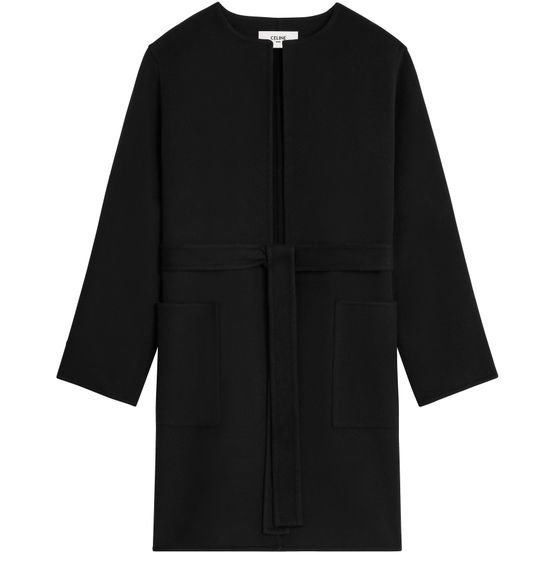 Embrace effortless elegance with Celine's Bathrobe coat in double face cashmere. Its loose fit drapes beautifully, enhanced by a pure collar and two patch pockets for practicality. The leather adjustment tabs, adorned with Celine's-engraved metal buckles and gold Triomphe rivets, add a touch of luxury, while the tie belt at the waist cinches for a flattering silhouette. Made in Italy, this coat is the epitome...