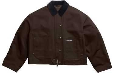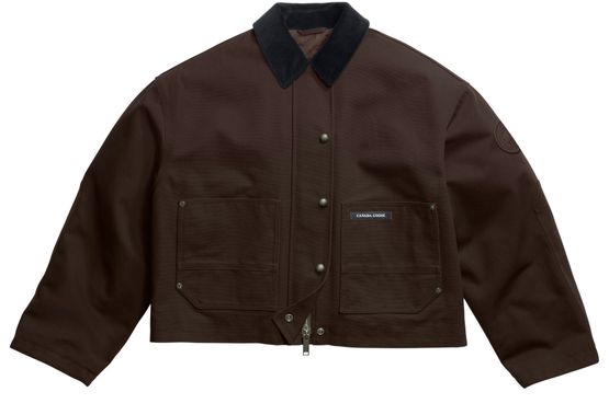 Reveal Canada Goose's cropped trucker jacket, a modern silhouette defined by its buttoned zipper closure and long sleeves. The front logo and patch pockets add a signature touch, while the versatile design transitions seamlessly from day to night, making it a standout piece for any occasion.