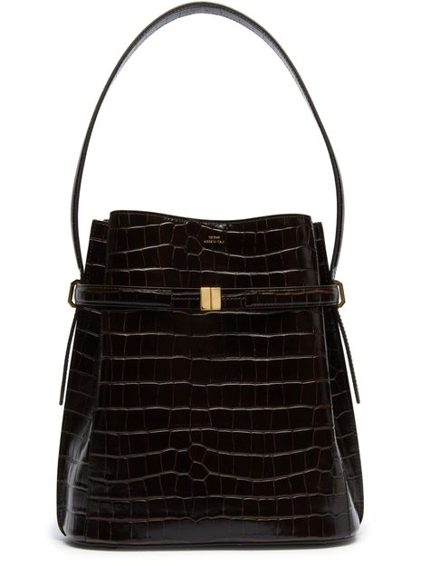 Belted croco-embossed bucket bag