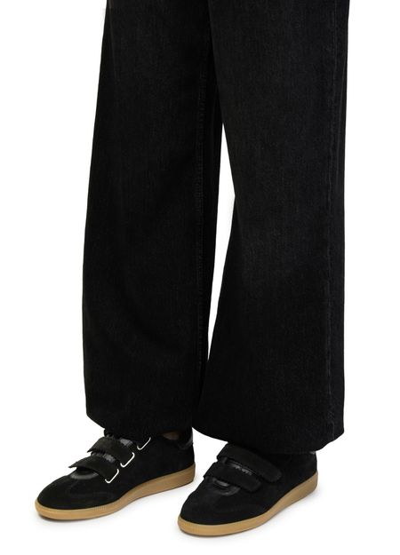 Reveal Isabel Marant's Beth sneakers, crafted from a refined mix of suede and smooth leather. The closed round toe and velcro fastening offer a sleek fit, while the contrasting sole and logo at the back add a signature touch. Visible stitching and a logo-printed insole complete this modern essential.