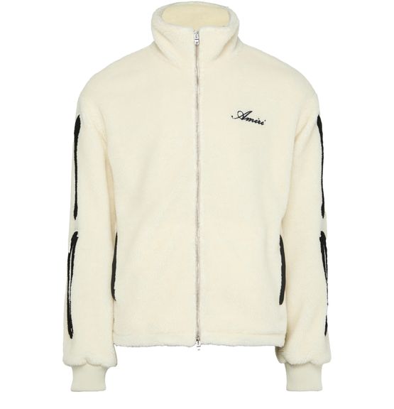 Amiri's Bones fleece jacket showcases a short, long-sleeved silhouette with a high neck for added warmth. Its zipper closure allows for effortless wear, while the embroidered chest logo adds a touch of style. With convenient side pockets, this casual jacket is perfect for laid-back outings or chilly evenings.