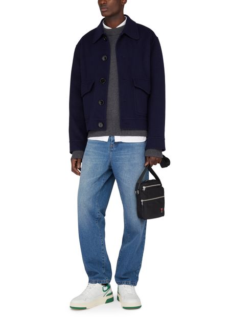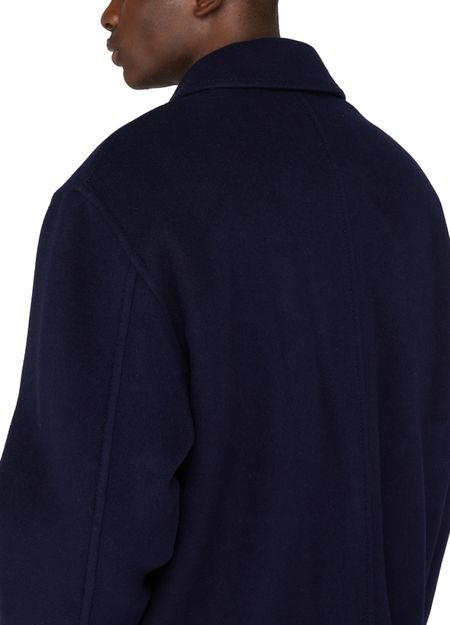 Boxy fit double face coat is a stylish winter essential designed with a warm fabric to keep you cozy. Featuring a classic collar and front buttoned closure, it exudes a timeless appeal. With practical front pockets and a reversible design, this coat effortlessly combines functionality and versatility.