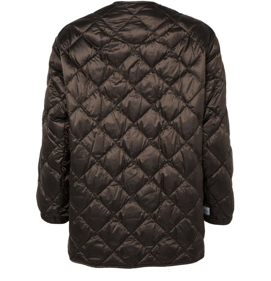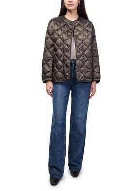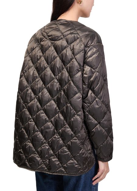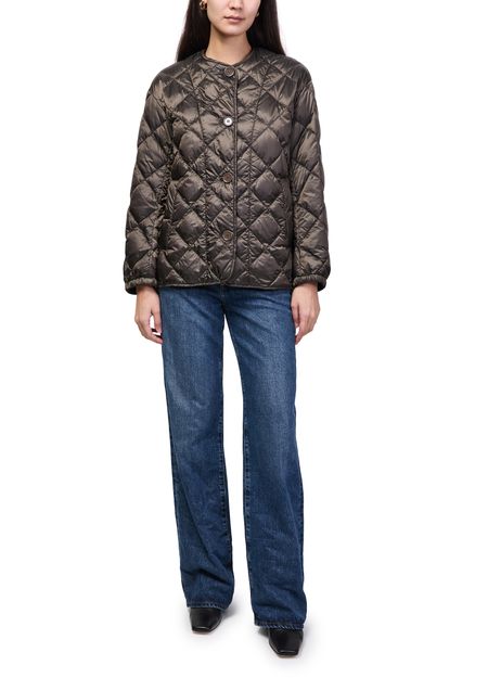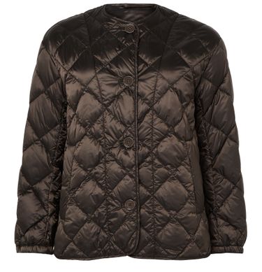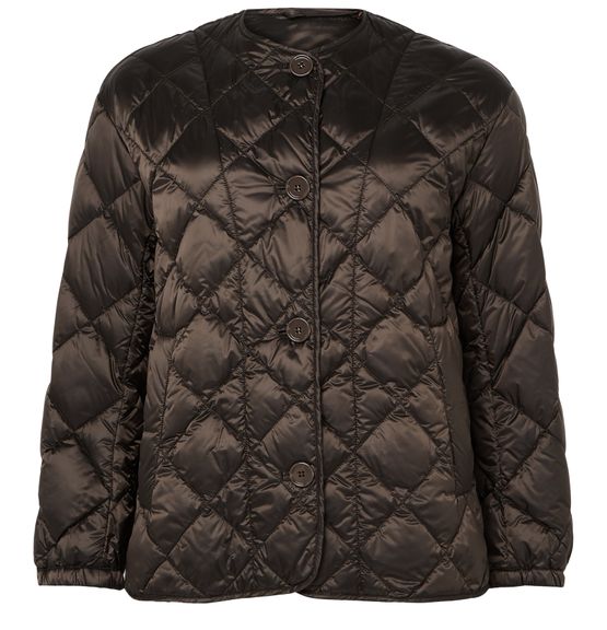 Reveal Max Mara's buttoned puffer jacket, a short, collarless silhouette with a diamond pattern and padded texture. The front buttoned closure and long sleeves offer both style and comfort, making this piece a versatile choice for layering from day to night.