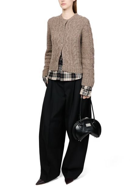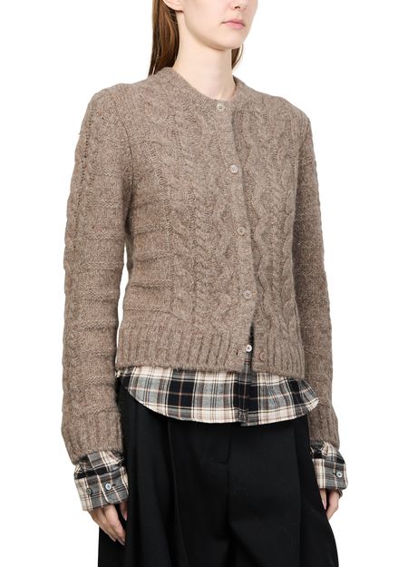 Reveal Acne Studios's fitted layered cardigan, a modern knitwear piece featuring a crew neck and long sleeves. The button fastening and topstitched edges add a refined touch, while the ribbed, marled material ensures comfort and style. Perfect for layering, this crop length cardigan complements any ensemble effortlessly.