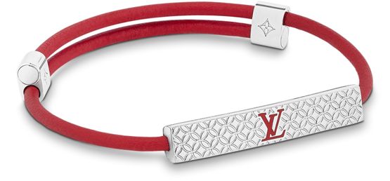 The elegant Champs-Elysées Bracelet is edited this season in bold new colours. The jewel-like rectangular plate is fashioned from silver-colour finish metal, engraved with a Monogram Flower motif and set off by enamelled LV Initials. The leather cord adjusts to each individual’s wrist, for an easy-to-wear accessory that can be styled solo or stacked.