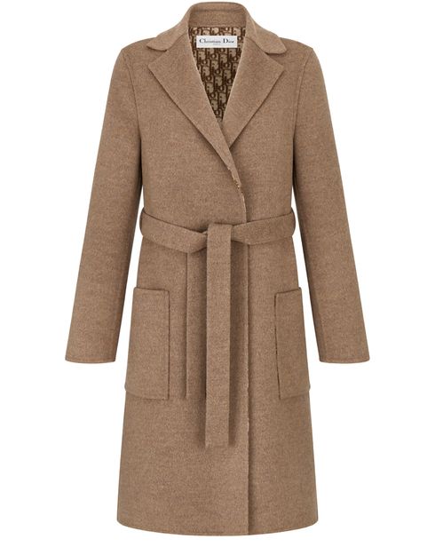 Reveal Dior's coat with belt, featuring an oblique interior and the iconic CHRISTIAN DIOR signature band. The tonal belt provides a refined look while the unlined design ensures a contemporary feel.