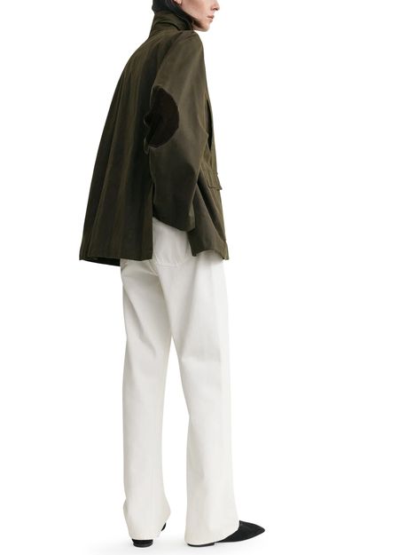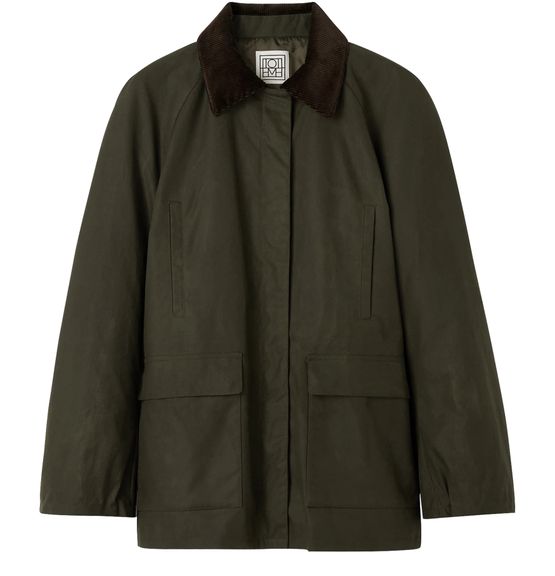 Toteme's Country jacket combines practicality and style with its concealed zipper and snap fastening. Featuring a large front pocket and flap pockets, it offers ample storage for essentials. Its long-sleeved design provides warmth, making it the perfect companion for outdoor adventures or casual outings in changing weather.