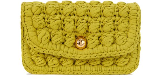 Featuring a highly sophisticated design, the Crochet bag with a flap is carried on a slender, braided handle. This creation is offered by the House of Bottega Veneta.