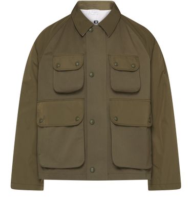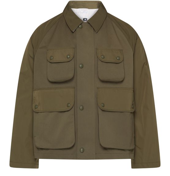 Thom Browne's Cropped jacket showcases a short silhouette with a front buttoned closure and long-sleeved design. Flap pockets add practicality, while a breast pocket and large front pocket enhance its utility. The logo at the back label signifies quality, making this piece a stylish choice for any occasion.