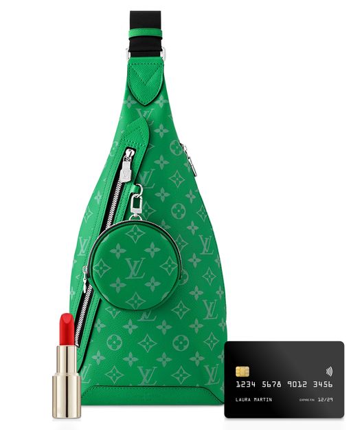 The Taigarama version of the sporty Duo Slingbag comes in an eye-popping new color for 2024. Finely embossed Taiga leather is combined with the House’s historic Monogram canvas in a bold, playful shade of green. A cool and casual alternative to a backpack, it features a removable pouch, ideal for keys, coins and other small personal items.