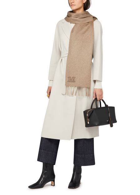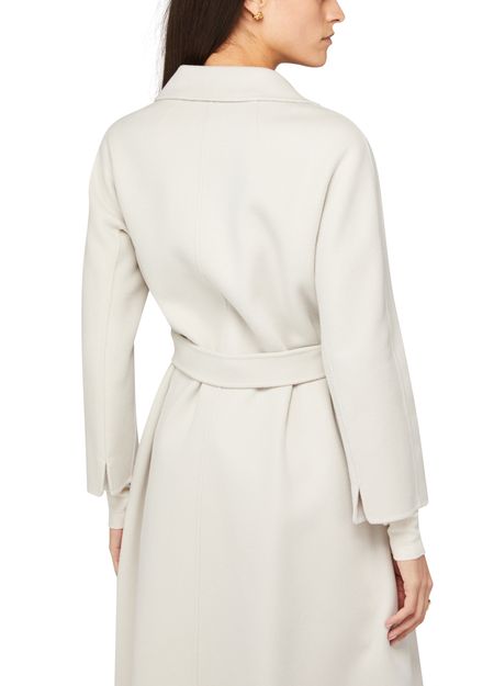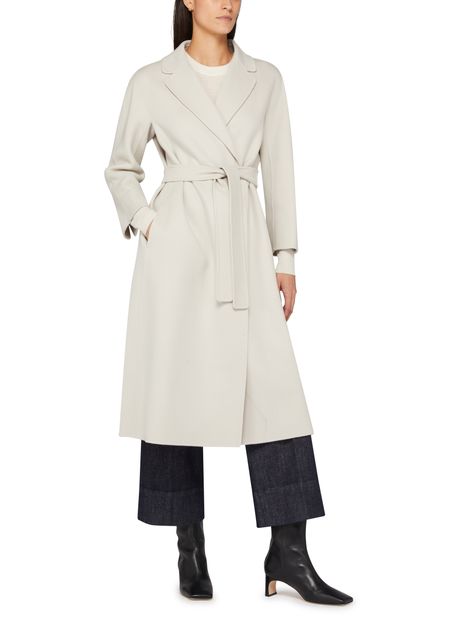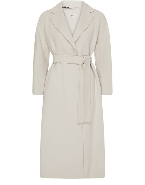 S Max Mara's Esturia belted coat showcases a sophisticated long design with long sleeves and a chic notched collar. Its elegant silhouette is enhanced by side welt pockets, perfect for essentials. The subtle logo at the back label adds a touch of refinement, making it a must-have for stylish layering.