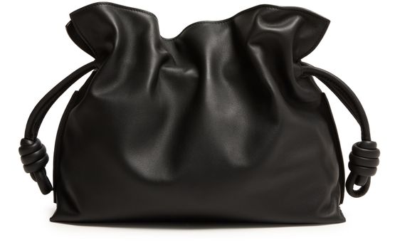 The Flamenco clutch is a soft and slouchy bag with a cinched closure and historical knot drawstrings. This medium version is crafted in nappa calfskin with intarsio squares inspired by Josef Albers's "Homage to the Square" series. This bag is part of the LOEWE x Albers collection.