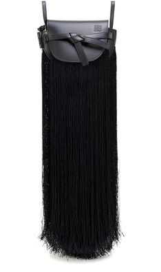 Opt for something bold, with the mini Gate fringes bag. Created in soft calf skin leather, this catwalk piece is adorned with long, silk fringes. The straps on its flap create Loewe's signature knot. Worn over the shoulder or cross-body it will add a little rock'n'roll to your style, and looks just as good with jeans as with an elegant dress.