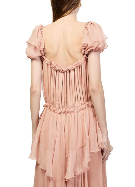 Reveal Chloe's bare shoulder maxi dress, a statement piece with ruffled short sleeves and a striking front slit. The flowing silhouette and unique neckline create a refined look, perfect for both daytime events and evening occasions. Experience effortless sophistication with this modern design.