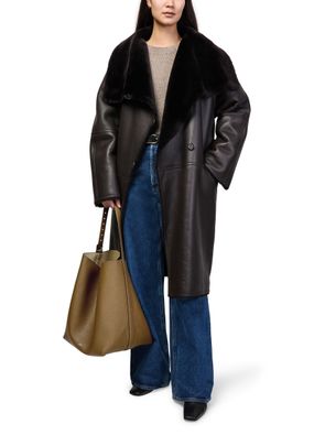 Reveal Toteme's grained leather shopper with belt, crafted with a single handle and visible stitching. The spacious interior compartment ensures effortless organization, while the refined design and premium materials make this tote a standout accessory for any modern wardrobe.